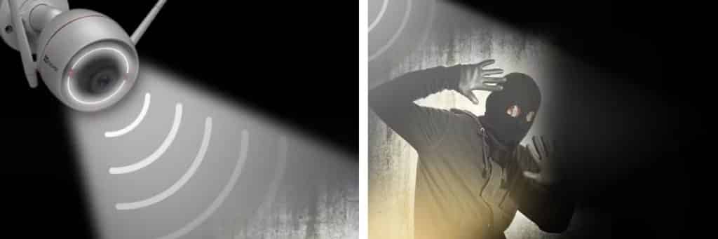 La cámara con luz ayuda al usuario de dos maneras: 1) Proporciona una visión clara de lo que sucede en la casa en cualquier momento. 2) La luz alerta al intruso de que ha sido localizado, lo que puede hacer que huya del recinto.